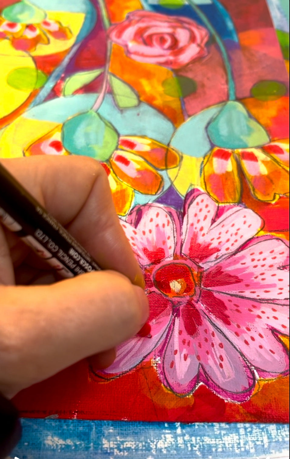 I work across all mediums - acrylics, inks, watercolours, monoprinting, and frankly any art supplies I can get my hands on - love a cheeky visit to my local art store.