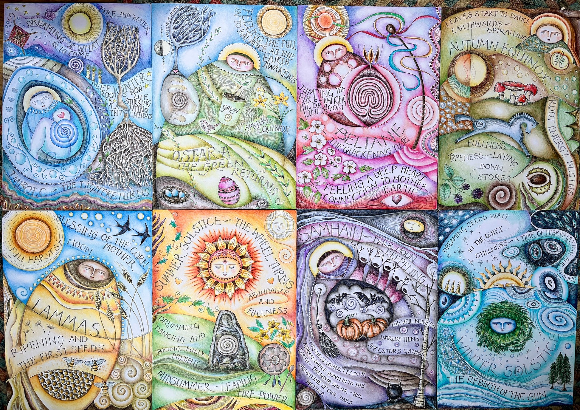 These are the eight spokes of the spiral path — the solstices, equinoxes, and fire festivals that root us back into earth’s magic.