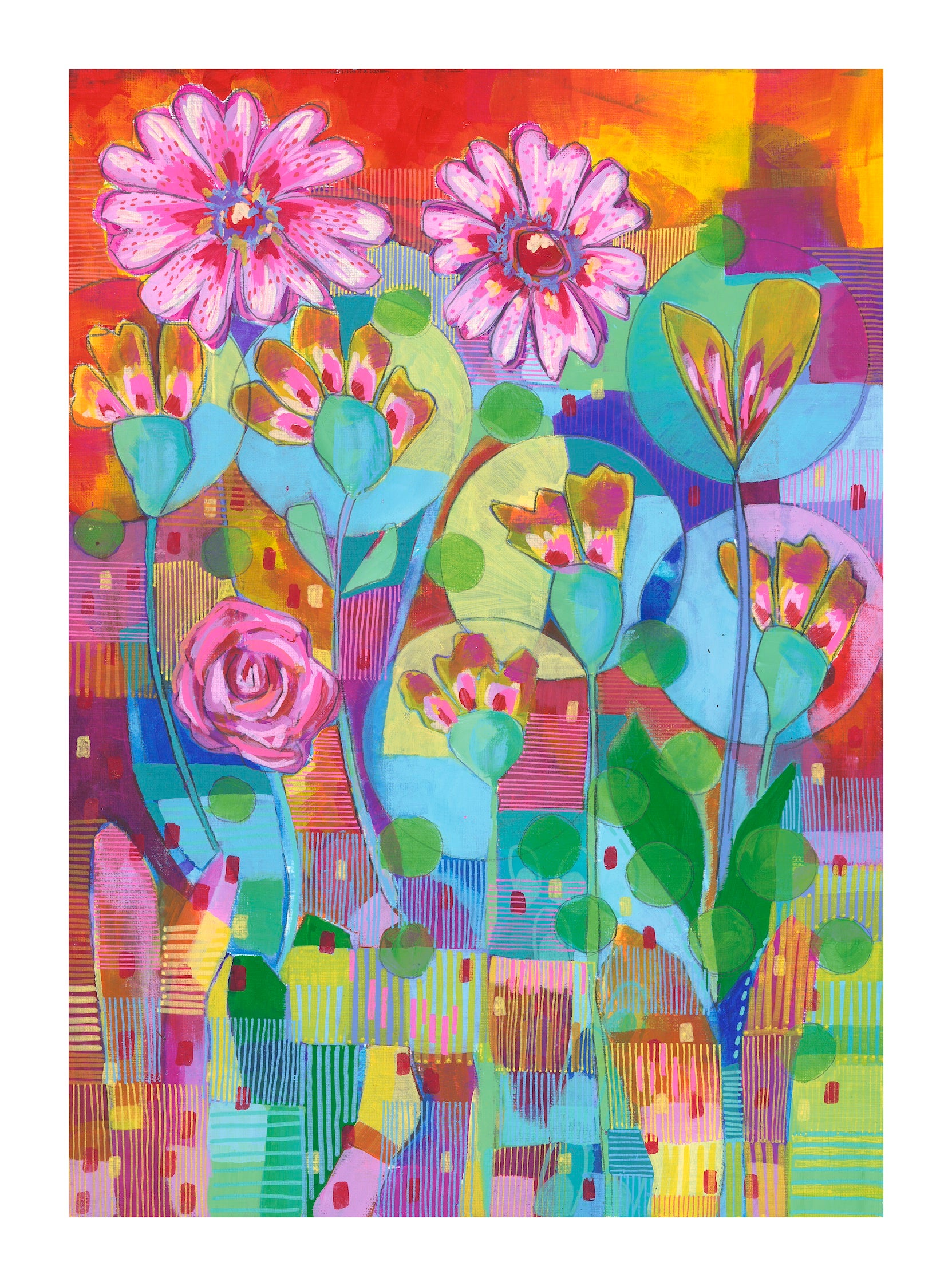 This is one of my favourite pieces, so I might cry a little as I let it fly out into the world. I forget to stand still all the time, I blame it on too much 70% dark chocolate. Perky coloured flowers however, need no apology. Why not dance in summer breezes, and move like no one is watching. Life is short, fill it with joy.
